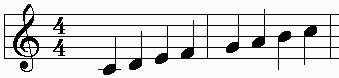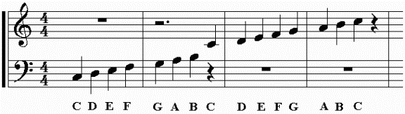 (What's the key sig. for C major?) Remember that the first note, C, is the