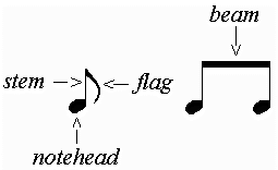 Beam: Line which connects two note flags. Beamed notes can only be