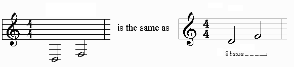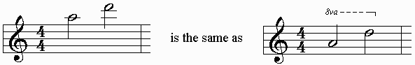 8va or 8bassa: Octave symbols which indicate that a pitch is to be